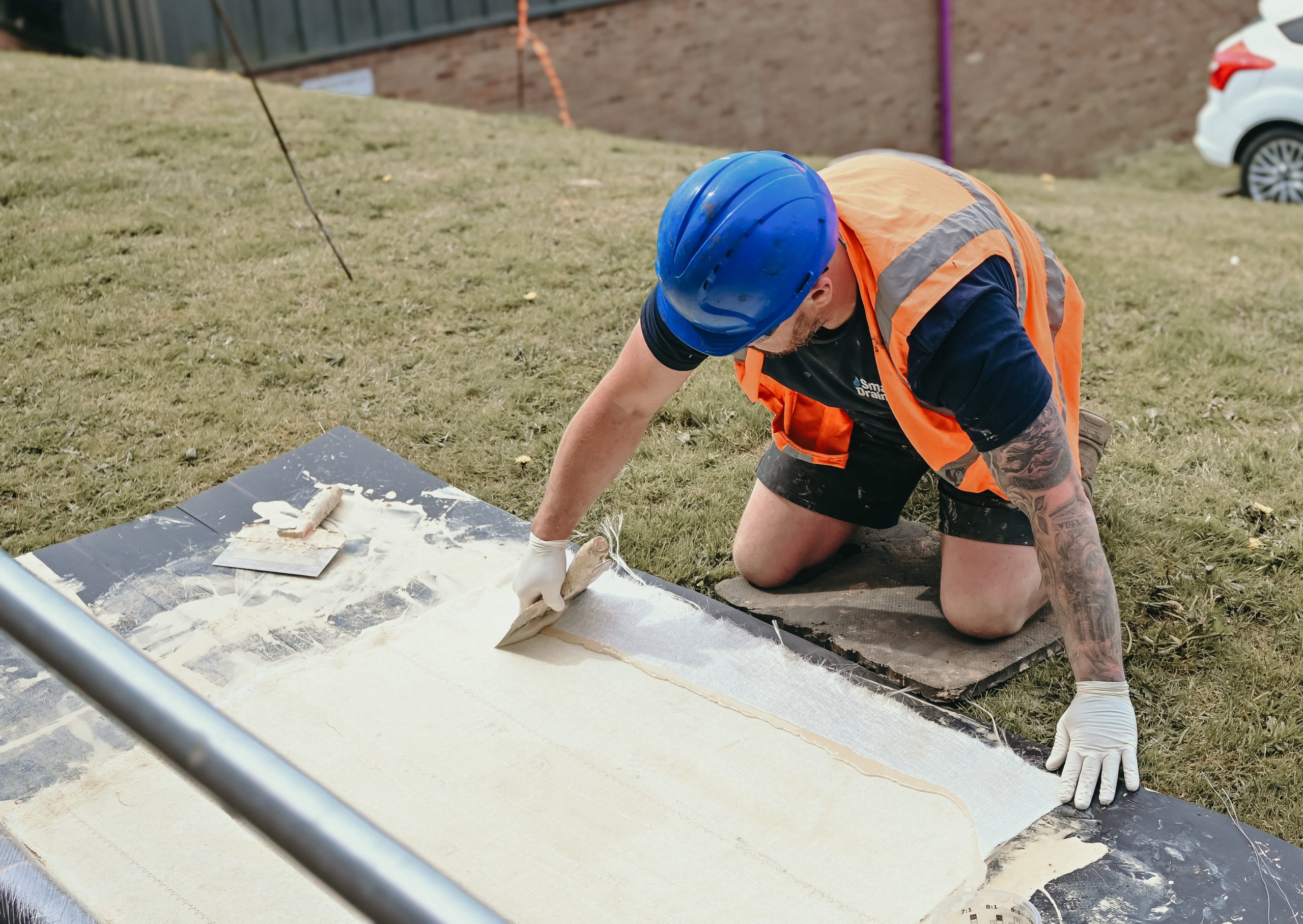 A flexible felt liner, pre-impregnated with a two-part epoxy resin, is carefully inserted into the pipe. - Inflation and Moulding
